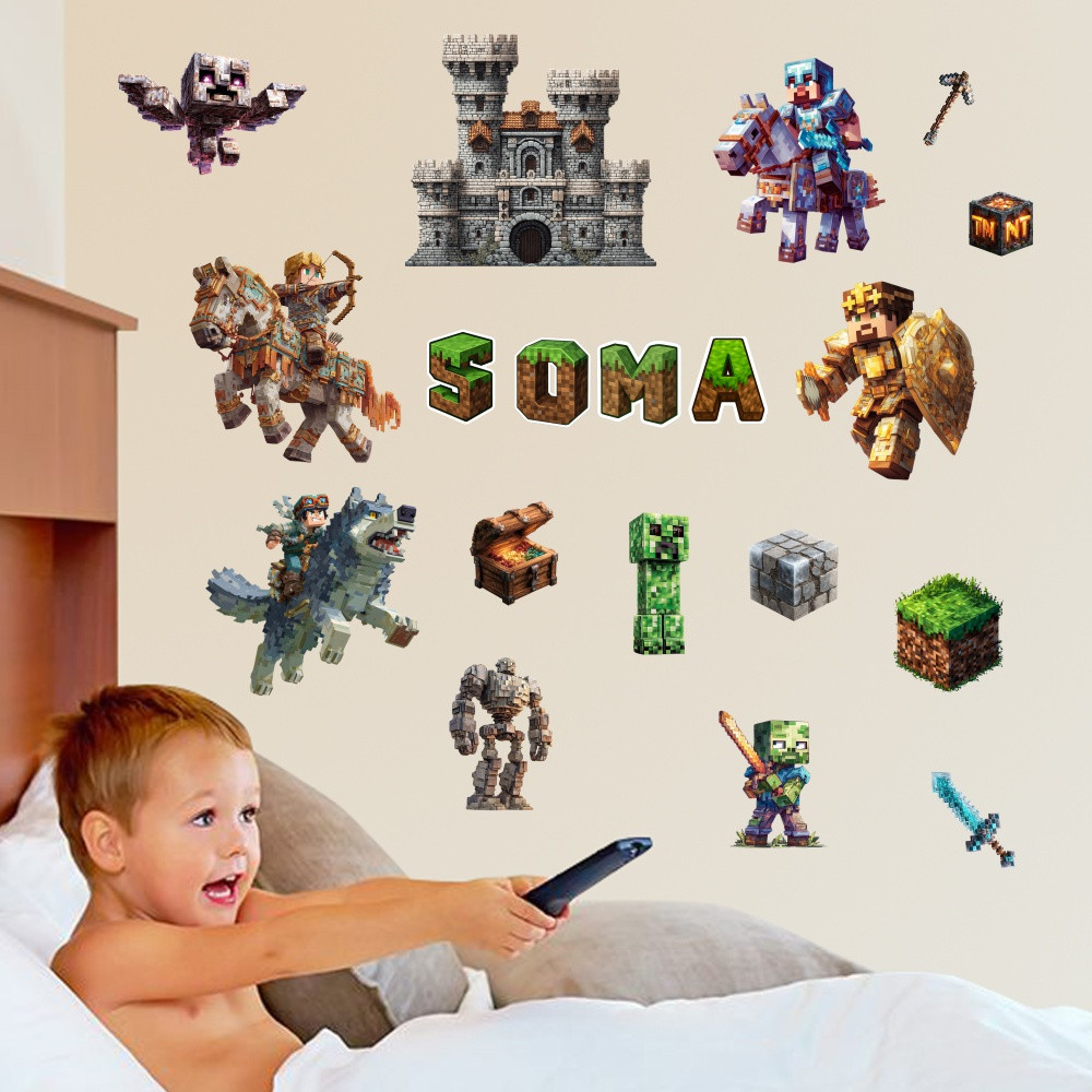 Falmatrica gyerekszobába gyereknévvel.Varázsold gyermeked szobáját igazi kalandparkká a Minecraft mintás falmatricákkal!